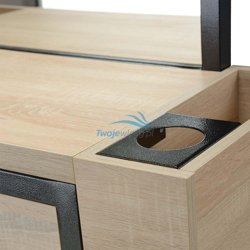 Konsoleta fryzjerska CRUDO idealnie nadaje się do wnętrz w stylu Loft. Charakteryzuje się on surowością i przestrzennością. Nieodłącznymi elementami stylu Loft są widoczne materiały, konstrukcje i instalacje. Ozdobą i dopełnieniem takiego salonu powinny być proste, metalowe lub drewniane formy meblowe, a ich rozmieszczenie we wnętrzu swobodne, z zachowaniem przestrzeni. Równie ważną rolę odgrywa oświetlenie. Obowiązkowe długie, wiszące lampy w prostych obudowach. Bo Loft to minimalizm w detalach. Taka właśnie jest konsoleta fryzjerska CRUDO.