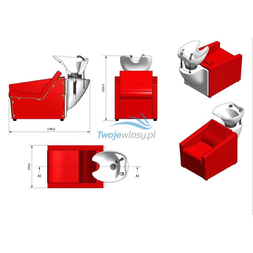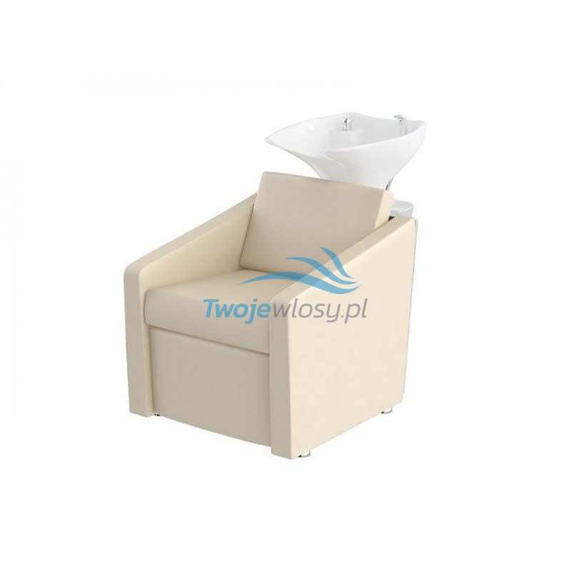 Myjnia fryzjerska KUBIK została w całości pokryta tapicerką, której kolor możesz wybrać z palety dostępnych obić tapicerskich. Charakteryzują ją miękkie, tapicerowane podłokietniki. Została wyposażona w białą umywalkę.