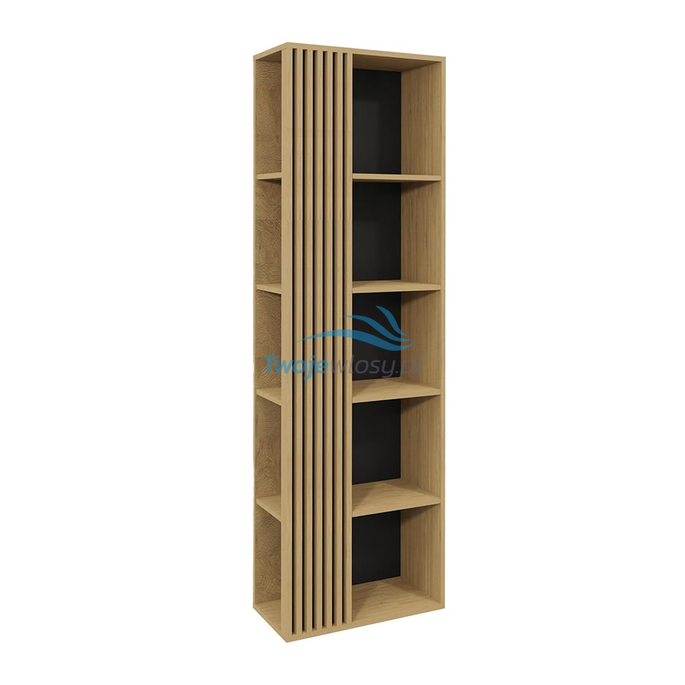 Prosta w formie i stworzona z płyty meblowej z laminatem imitującym drewno konstrukcja jest niezwykle elegancka. Mimo tego, że całość korpusu wygląda masywnie, to za sprawą lameli, bryła nabiera lekkości i nie przytłacza swoim zdecydowanym wyglądem. Konstrukcja posiada idealną funkcjonalność, która jest istotna w wymagającej pracy fryzjera. Płyta laminowana do wyboru według wzornika – pięknie imituje wygląd naturalnego drewna włącznie z fakturą słojów na powierzchni, dodatkowo jest bardzo odporna na zarysowania i temperaturę (mebel będzie bardzo długo wyglądał jak nowy).