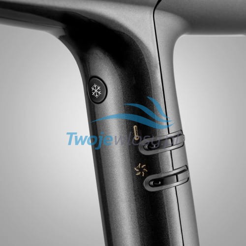 Ergonomiczna konstrukcja w kształcie litery T zapewnia doskonałe wyważenie i komfort użytkowania nawet podczas długotrwałej pracy. Dzięki technologii jonizacji włosy pozostają gładkie, lśniące i wolne od puszenia oraz elektryzowania. Niska waga – tylko 388 g oraz cicha praca na poziomie 70 dB czynią suszarkę wyjątkowo komfortową w codziennym użytkowaniu.
