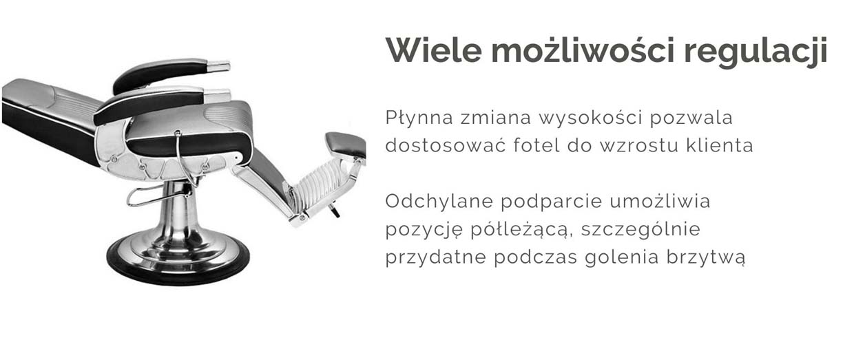 Odchylane oparcie – pozwala na ustawienie klienta w pozycji półleżącej, co jest kluczowe przy goleniu i pielęgnacji zarostu.