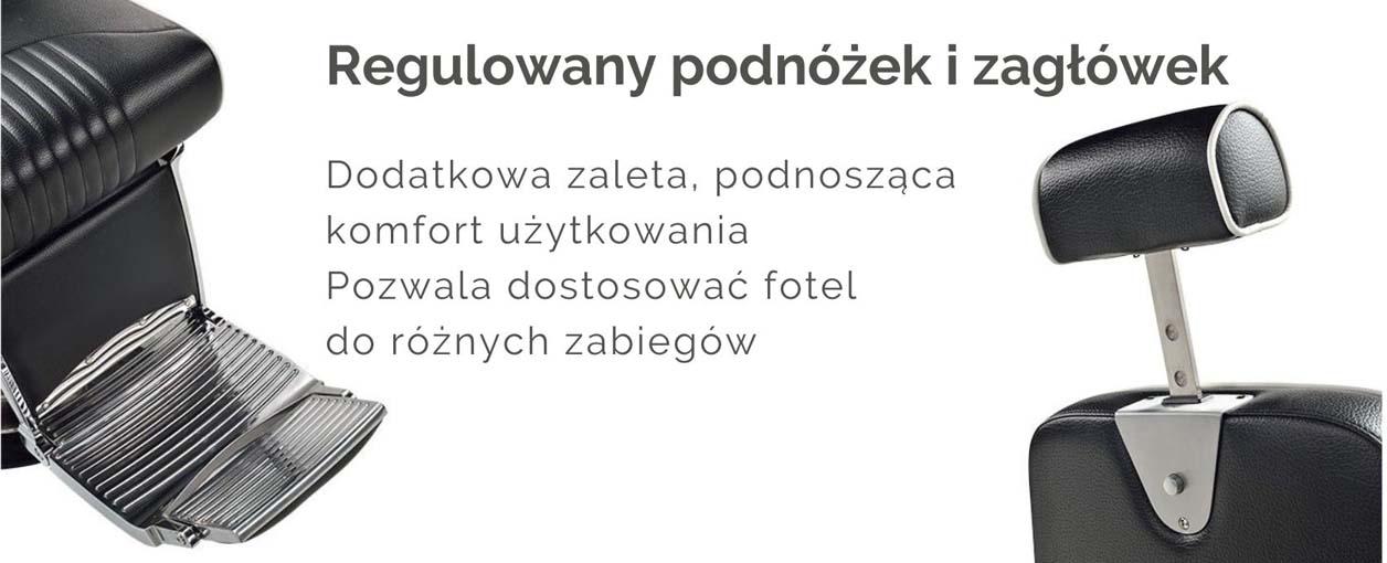 Regulowany podnóżek i zagłówek – zwiększają komfort, umożliwiając dopasowanie pozycji do wzrostu i preferencji klienta.