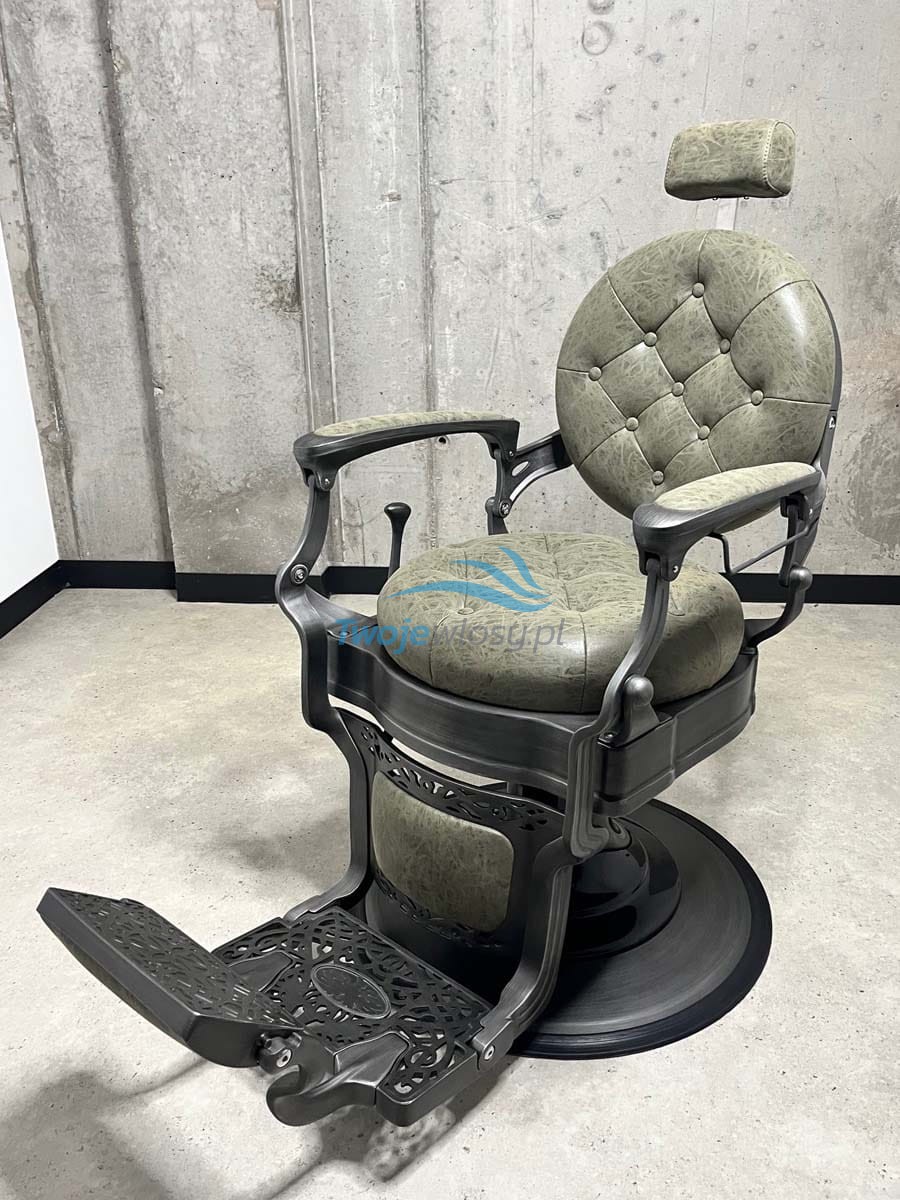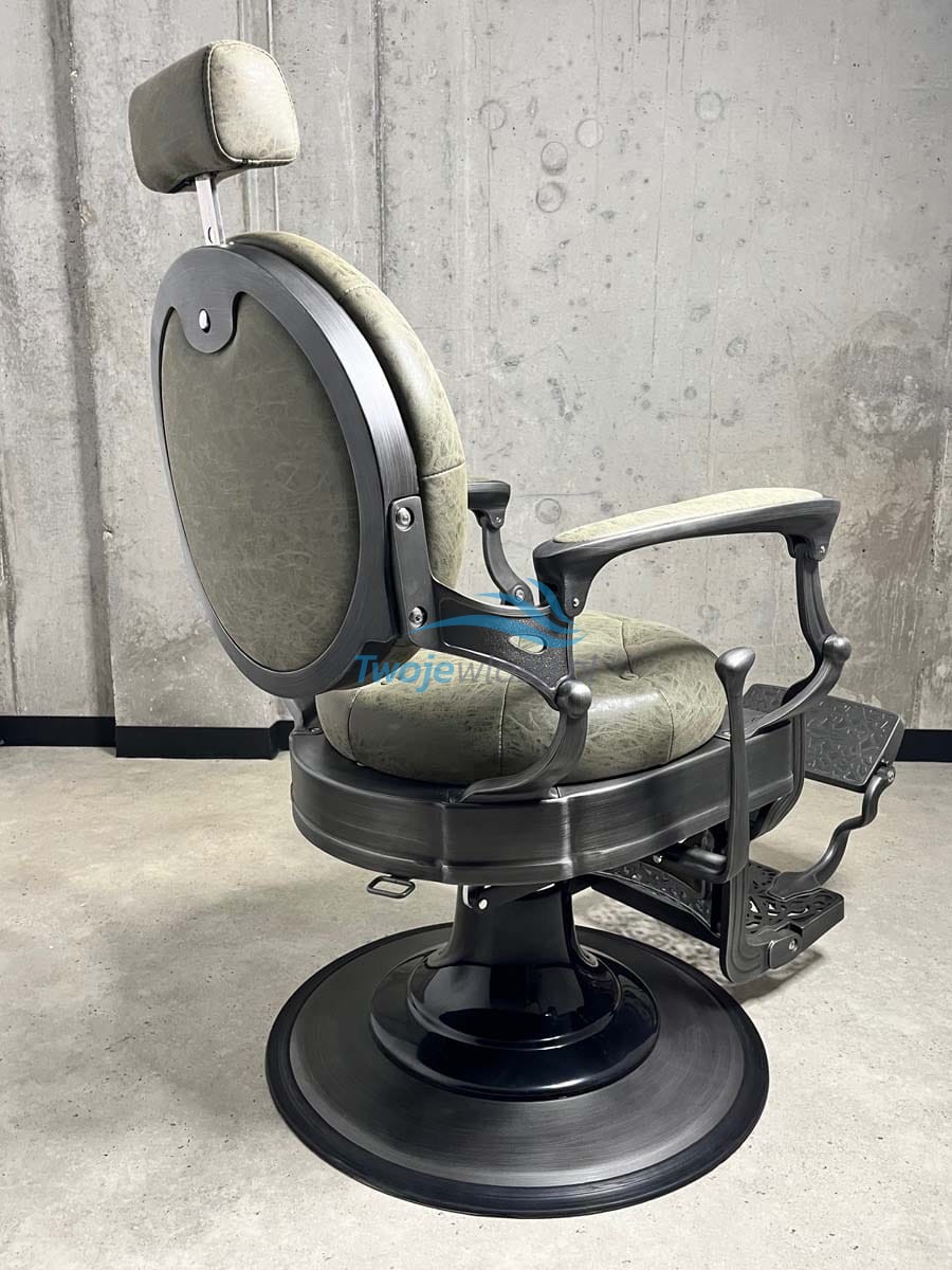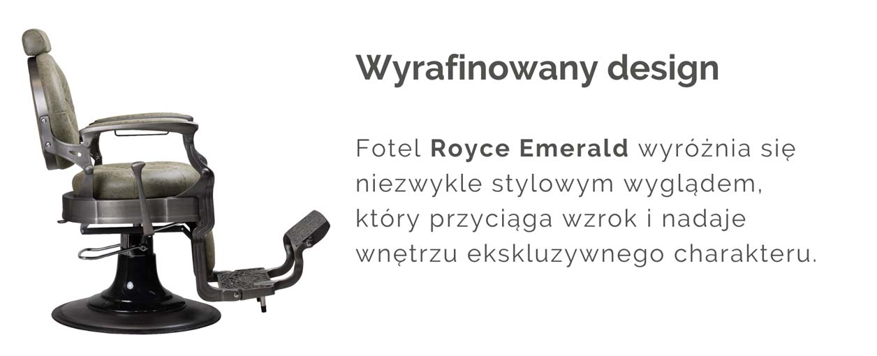 Podkreśl wyjątkowy charakter swojego salonu barberskiego dzięki fotelowi Royce Emerald – synonimowi elegancji, funkcjonalności i maksymalnego komfortu. Ten unikalny model łączy w sobie klasyczny design z nowoczesnymi rozwiązaniami, zapewniając wygodę zarówno barberowi, jak i klientowi.