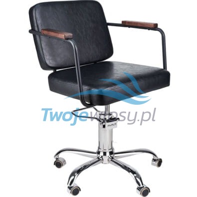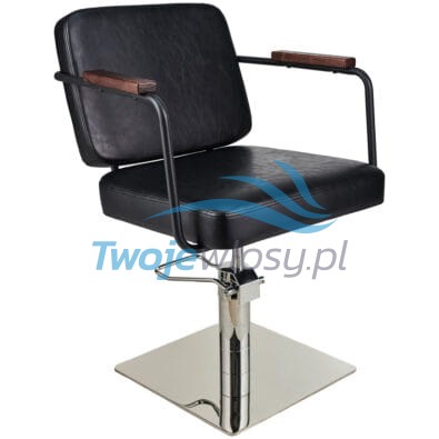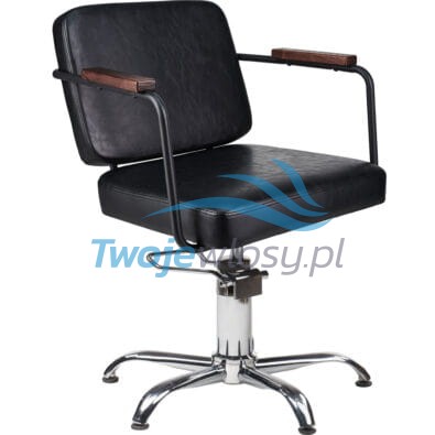 Fotel fryzjerski ENZO to mebel idealnie pasujący do wnętrz utrzymanych zarówno w stylistyce industrialnej, jak i boho. My widzimy go we wnętrzach wykończonych betonem, drewnem i szkłem z dużą ilością zieleni, ale musimy przyznać, że Wasze realizacje wciąż nas pozytywnie zaskakują. Posiada metalowy stelaż w kolorze czarnym i drewniane nakładki na podłokietnikach w kolorze orzecha. Kombinacja drewna, metalu i postarzanej skóry w połączeniu z geometrycznym kształtem tworzy ciekawe połączenie, które cieszy oko wielu naszych Klientów.