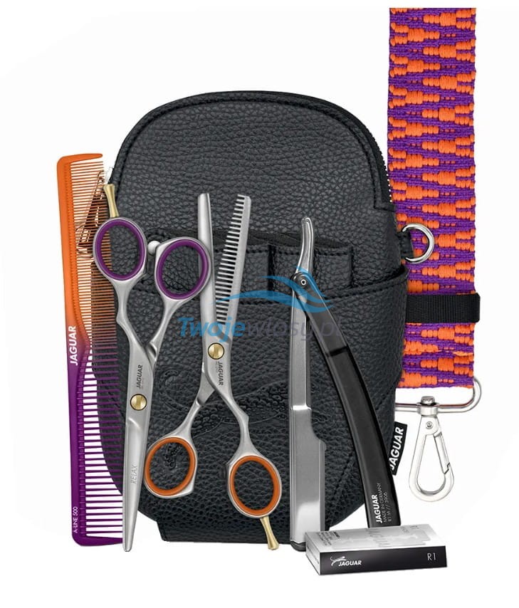 W zestawie znajdują się nożyczki fryzjerskie Relax 5,5″, degażówki 5,5″ oraz komplet praktycznych akcesoriów, które zapewniają komfort i wszechstronność pracy. Dzięki dołączonej brzytwie Jaguar R1 M Black jesteś przygotowany na każdą technikę stylizacji.