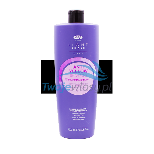 Szampon Lisap Light Scale Anti Yellow to specjalny produkt do pielęgnacji włosów blond zarówno (farbowanych i naturalnych), rozjaśnionych i siwych. Zawiera płyn diamentowy i perłowy, który zapewni włosom niepowtarzalny blask. Delikatnie oczyszcza skórę głowy i włosy, nie obciążając ich, a także nawilża włókna włosowe. Szampon Anti Yellow zawiera fioletowy pigment, dzięki któremu utrzymasz chłodny odcień blondu. Pigment osadza się na powierzchni włosa, neutralizując niepożądane żółte refleksy spowodowane zanieczyszczeniami, pogodą, dymem i naturalnym procesem utleniania