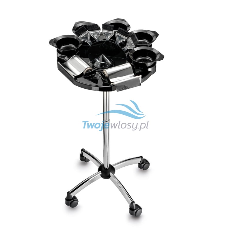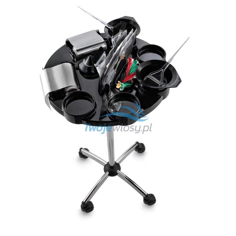 To propozycja dla stylistów fryzur, którzy chcą sobie zapewnić maksymalny komfort podczas koloryzacji. Pomocnik fryzjerski Tinto to jeden z profesjonalnych produktów polskiej marki Panda. Mimo swojej kompaktowej budowy, zmieści wszystko, co potrzebne do wykonania koloryzacji. Pomocnik został wyposażony w 5 wyprofilowanych uchwytów na miseczki oraz dodatkowe uchwyty na pędzle i dwa miejsca na folię aluminiową. Dzięki kółkom i lekkiej konstrukcji jest bardzo mobilny, dlatego po prostu wygodnie się z niego korzysta. Pomocnik ma uniwersalny, czarny kolor – świetnie wpisuje się w wystrój każdego salonu.