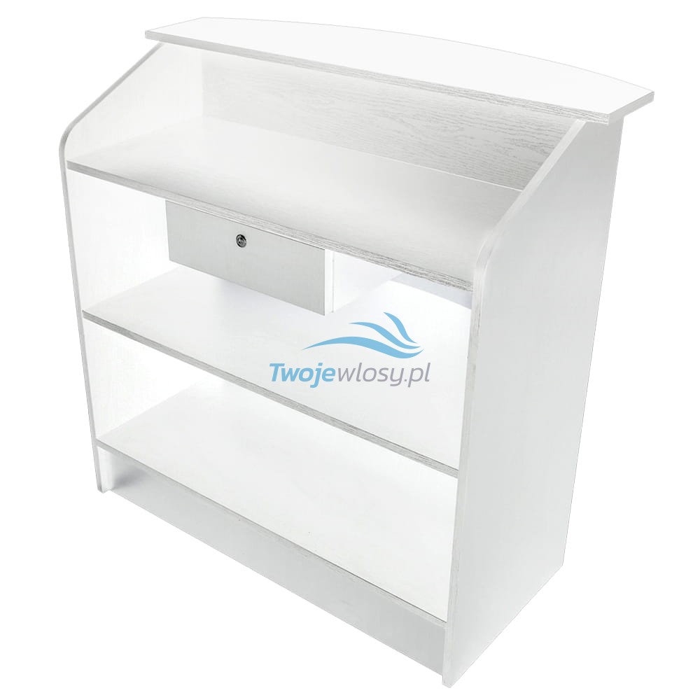 Estetyczny, prosty oraz elegancki styl. Jej klasyczna forma pasuje do każdego wnętrza. Wysokogatunkowa płyta laminowana w kolorze białym. Recepcja jest do samodzielnego montażu.