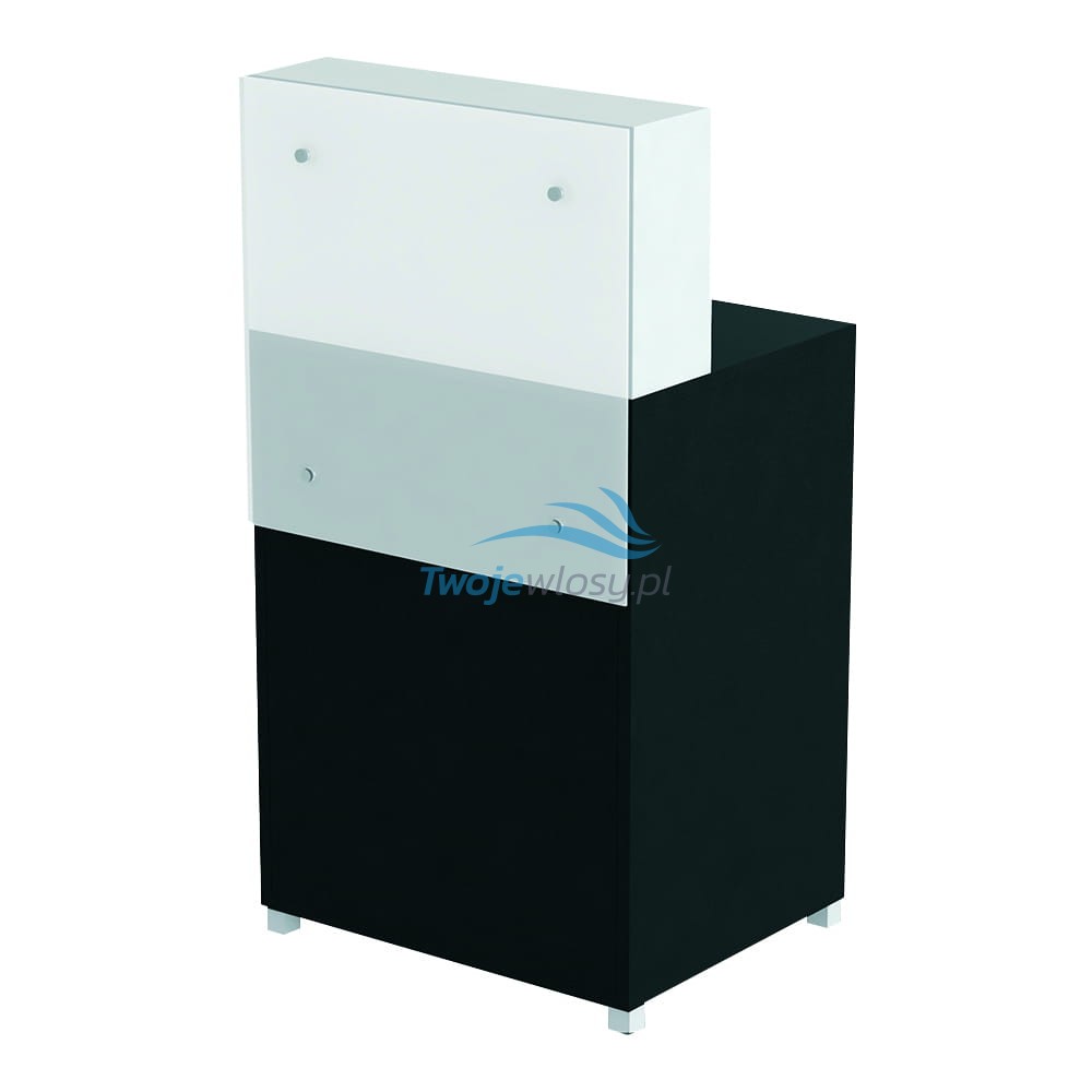 Recepcja z kolekcji OPIUM charakteryzuje się prostotą i niezwykle solidnym wykonaniem. To subtelny i funkcjonalny mebel, który sprawdzi się w każdym wnętrzu. Konstrukcja jest wykonana z biało-czarnej płyty z dodatkowym elementem dekoracyjnym. Recepcja posiada dużą ilość miejsca na niezbędne dokumenty, dzięki czemu ułatwi zachowanie porządku i organizację pracy.