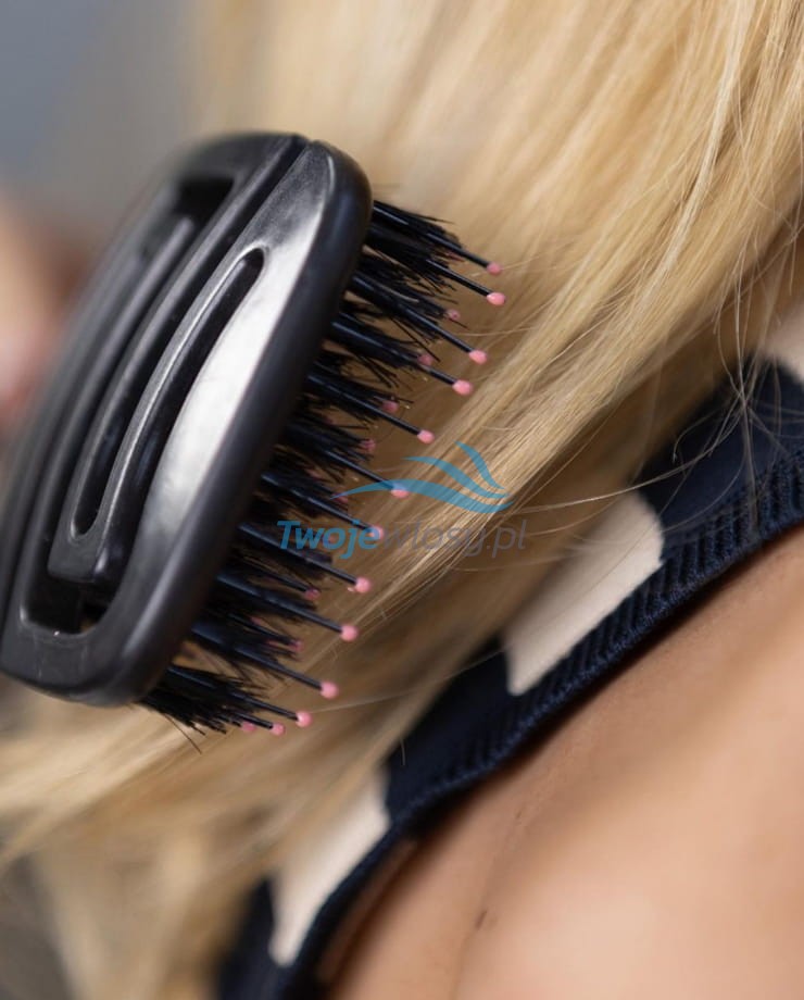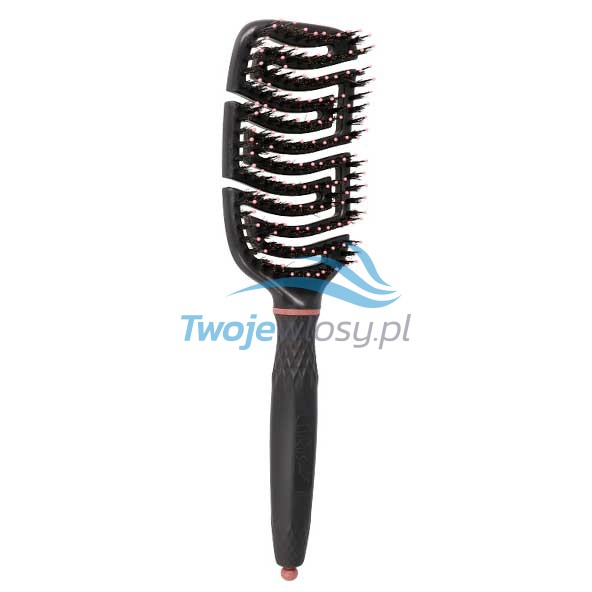 Dzięki unikalnemu połączeniu elastycznych włókien i włosia naturalnego z dzika, zapewnia efektywne rozplątywanie, minimalizując łamanie i uszkadzanie włosów. Elastyczne włókna szczotki gwarantują skuteczne rozczesanie nawet najbardziej zawiłych kosmyków, minimalizując dyskomfort i łamanie włosów. Wykonana z wysokiej jakości materiałów, szczotka jest solidna i trwała, zapewniając długotrwałe użytkowanie. Rączka zawiera wyjmowany szpikulec ułatwiający podział włosów, co zapewnia wszechstronność w stylizacji.