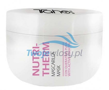 Tahe Nutri Therm - maska do włosów farbowanych i suchych intensywnie nawilżająca i regenerująca maska z termoaktywnymi składnikami i aktywną keratyną zapewniająca długotrwałą i dogłębną ochronę włosów. Idealne rozwiązanie dla włosów przesuszonych i po zabiegach chemicznych.