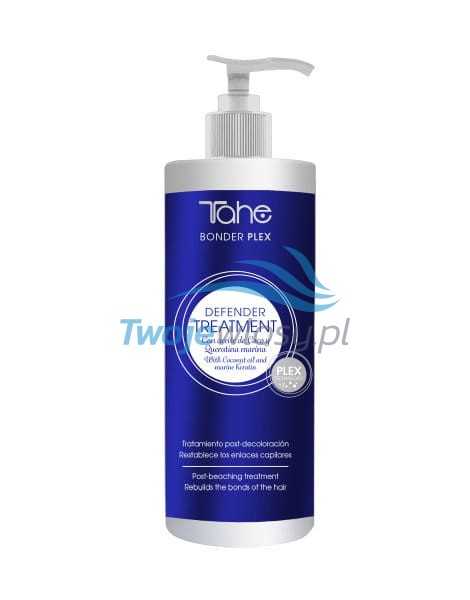 Tahe Defender szampon regenerujący do włosów dekoloryzowanych - w składzie szamponu można znaleźć olej kokosowy, który jest źródłem nienasyconych kwasów tłuszczowych, witamin A, E, C i B, kwasu foliowego, a także licznych składników mineralnych, takich jak żelazo, magnez, wapń, cynk i fosfor.
