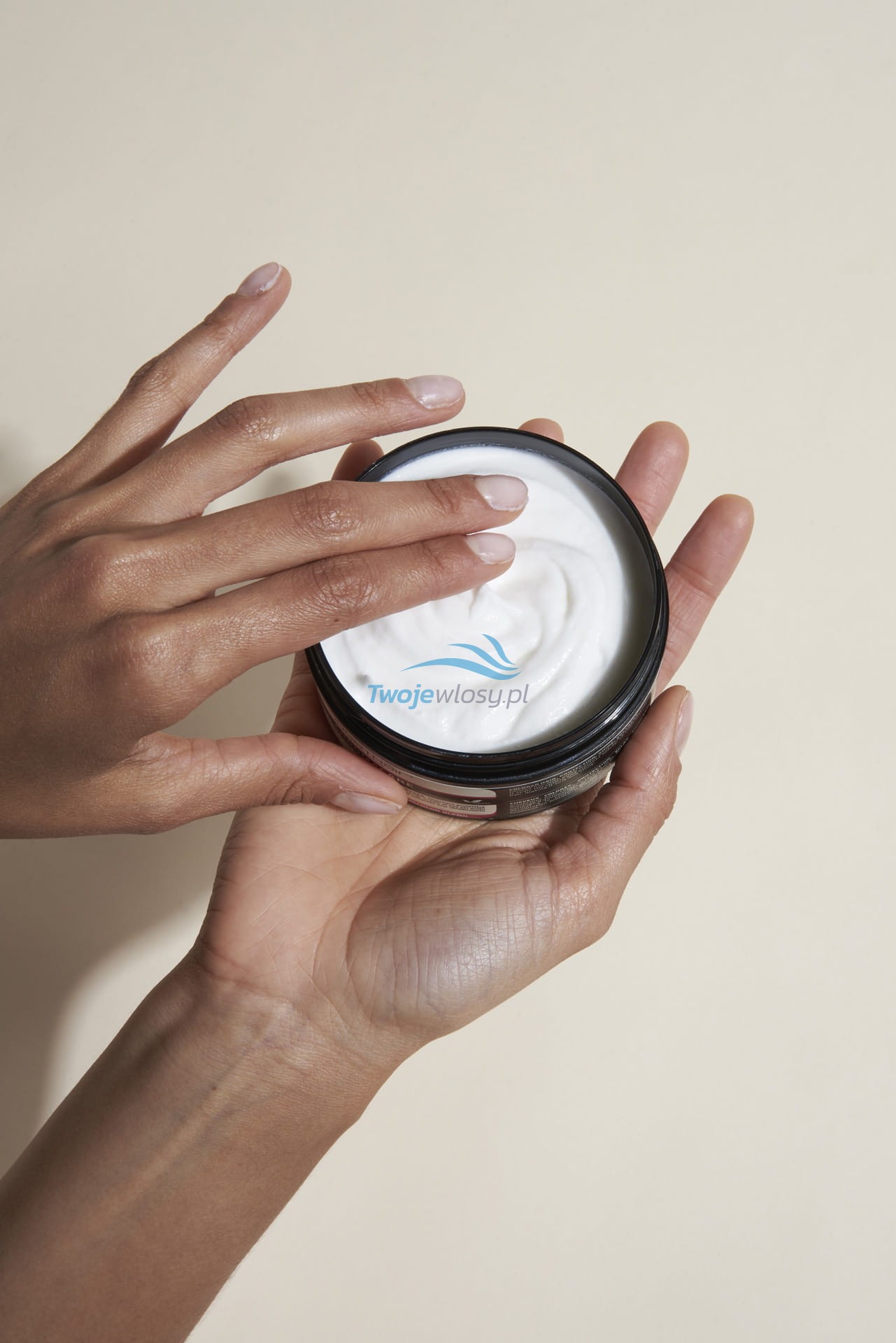 Nałóż maskę na umyte, wilgotne włosy. Rozprowadź równomiernie na długości i końcach. Pozostaw na 5–10 minut, następnie dokładnie spłucz.