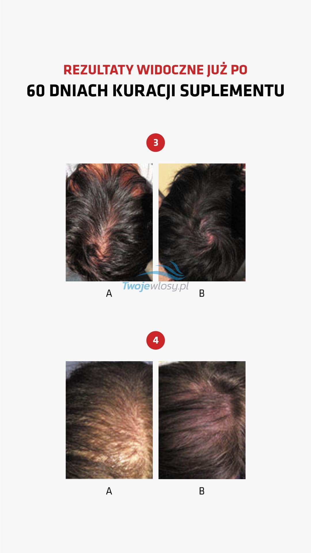 - Widocznie zwiększa się ich liczba na cm² skóry głowy.