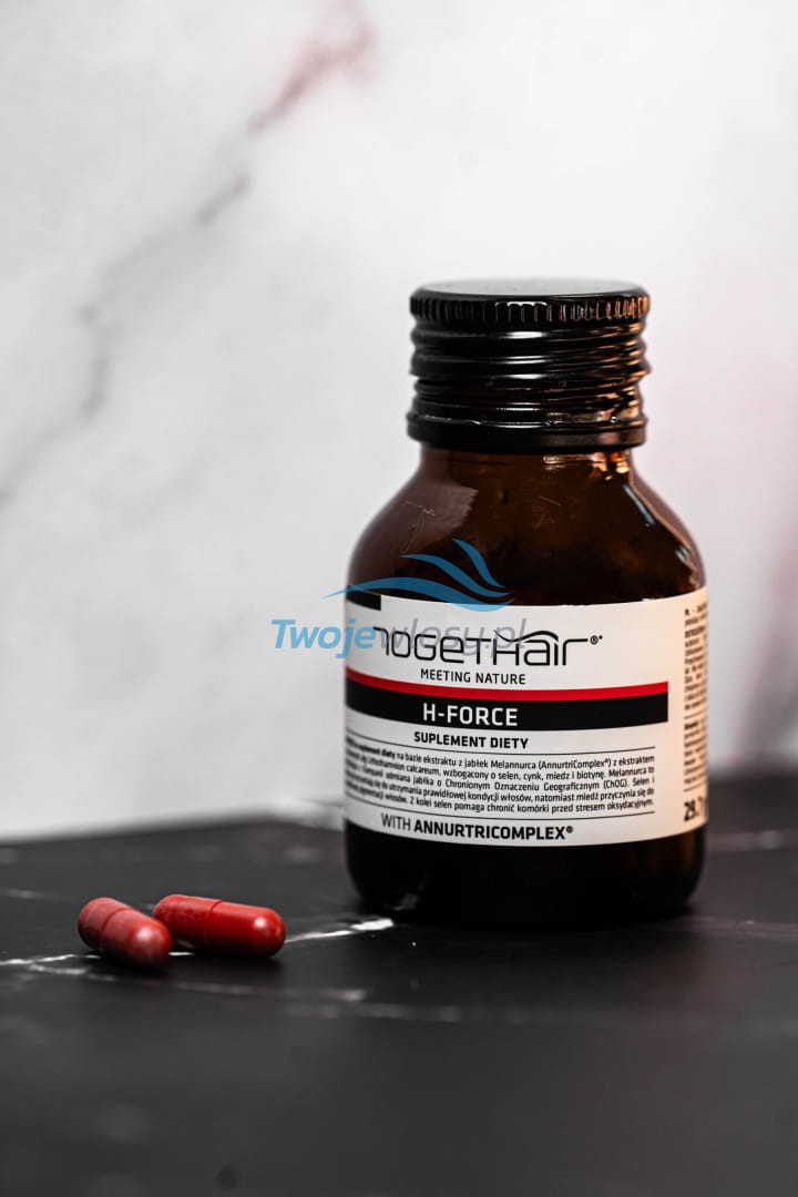Odkryj innowacyjny suplement diety Togethair H-Force, który skutecznie przeciwdziała wypadaniu włosów, zagęszcza je i przywraca im zdrowy wygląd. Dzięki opatentowanemu kompleksowi AnnurtriComplex® oraz starannie dobranym składnikom roślinnym, Twoje włosy odzyskają naturalną witalność, siłę i pigmentację. Pierwsze efekty widoczne są już po 60 dniach kuracji!