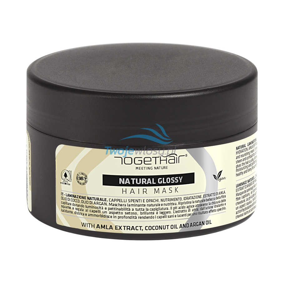 Togethair Natural Glossy Maska laminująca do włosów przeznaczona jest dla osób, których włosy są zniszczone farbowaniem i innymi zabiegami, przywraca naturalne piękno włókna włosa, nadając blask i łatwość rozczesywania na całej długości włosów.