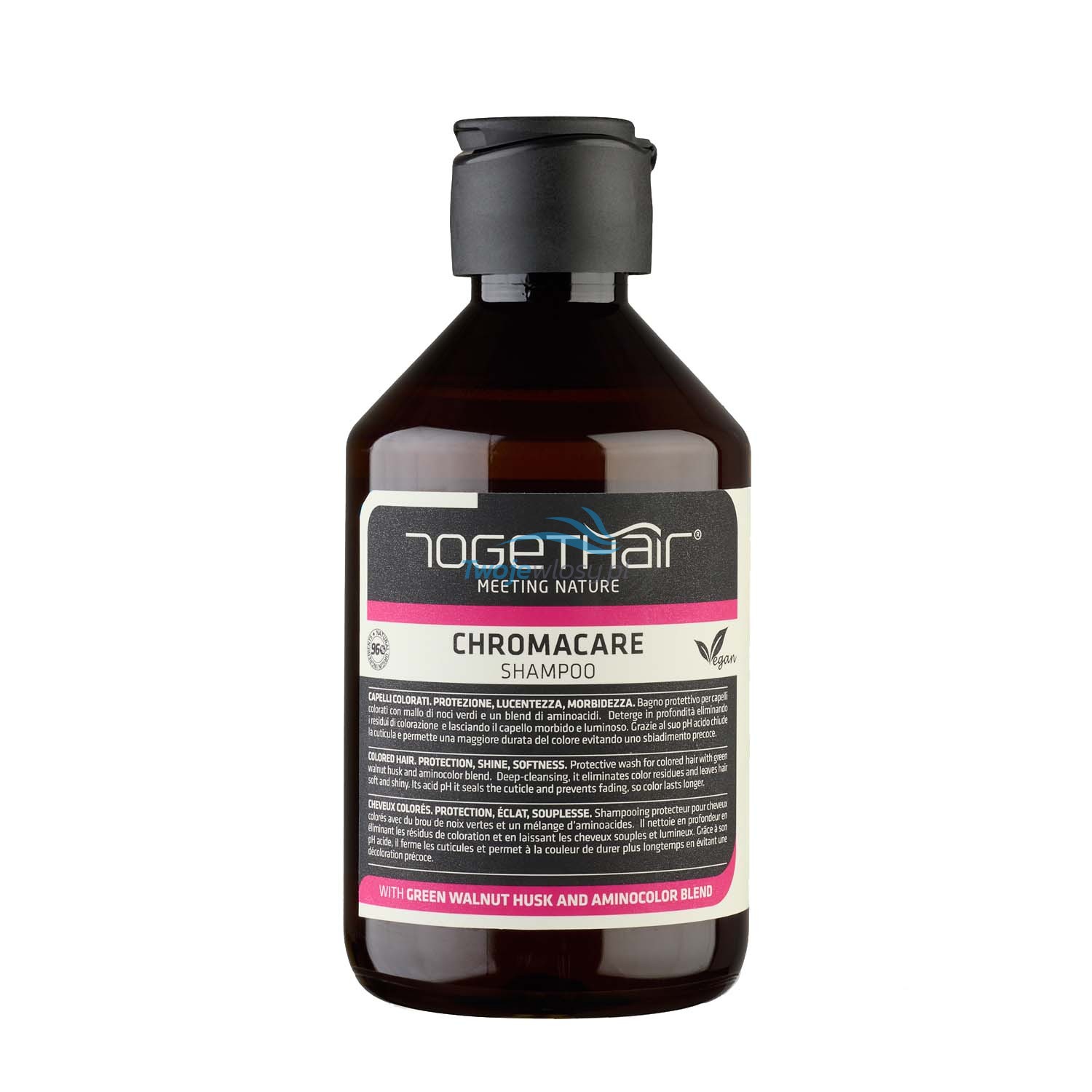Togethair NHC Chromacare Szampon 250 ml – delikatnie oczyszcza włosy farbowane, chroni kolor przed blaknięciem i wzmacnia strukturę włosa.